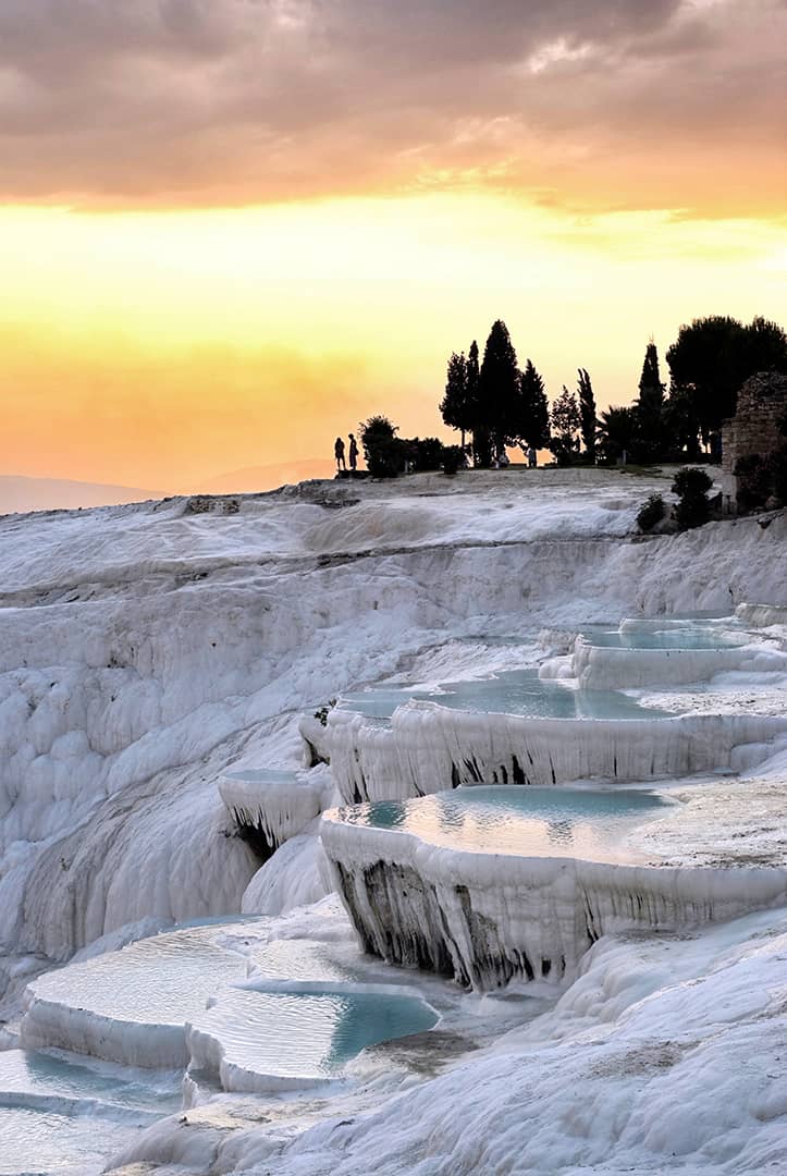 Pamukkale has been a tourist destination for more than 2,000 years. Pamukkale is not only a natural wonder, but also a place where you can travel back in time by visiting the ancient city of Hierapolis. The ruins of the baths, the temples, and the other monuments of this Graeco-Roman spa resort await visitors today. In Hierapolis, healing waters, superstition, and faith all intermingled in rituals that developed in connection to the successive local cults and religions.