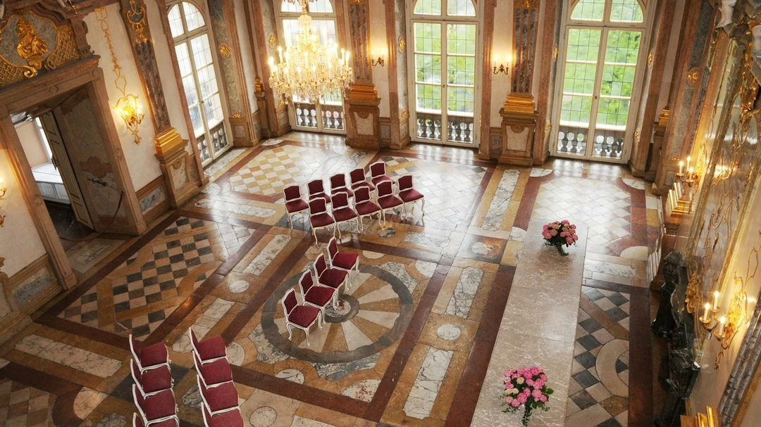 The Marble Hall, the former banquet hall of the prince-archbishops, is generally regarded as one of the “most beautiful wedding halls in the world”. In former times, the likes of Leopold Mozart and his children, Wolfgang and Nannerl, made music here. Nowadays, it regularly hosts weddings, conferences and awards ceremonies. The Marble Hall also provides an atmospheric venue for the SchlossKonzerteMirabell concerts. The “Angel Staircase”, which leads up to the Marble Hall, is decorated with numerous cherubs.