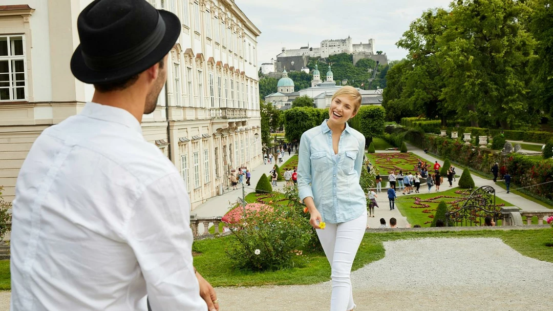 Mirabell Gardens, along with the Felsenreitschule and Nonnberg Convent, is one of the most important shooting locations from the famous Hollywood musical “The Sound of Music”. In the film, Maria and the children dance around the Pegasus Fountain in front of the palace, singing the song “Do Re Mi”. At the end of the scene, the Trapp family stand on the steps in front of the Rose Hill and sing the song’s final bars. At the same time, viewers are enchanted by unique views across Mirabell Gardens towards the fortress.